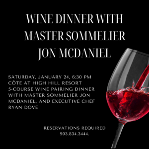 Wine Dinner with Master Sommelier Jon McDaniel Wine Dinner with Master Sommelier Jon McDaniel — Saturday, Dec ... 06 Dec 6:30 pm